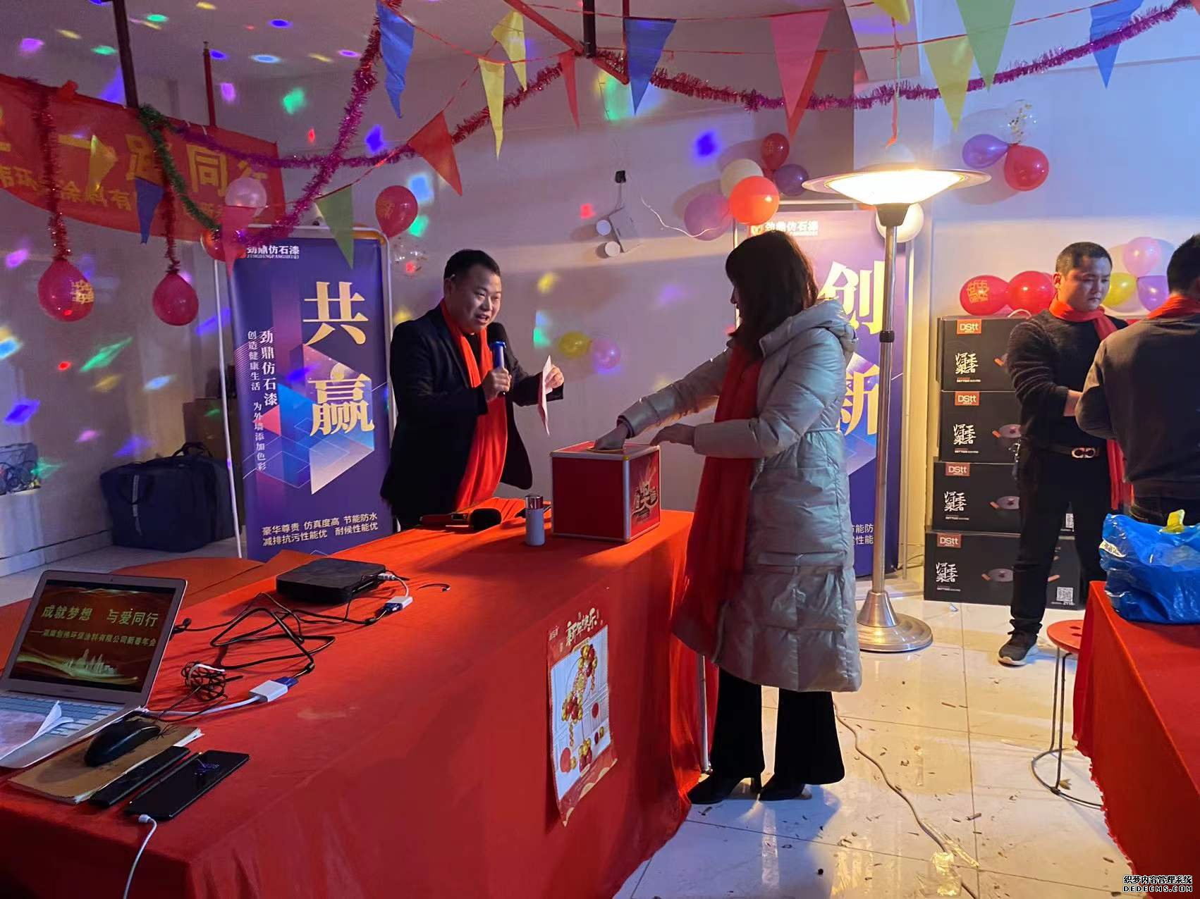 年会的最后一个环节,是颁发年终奖,员工逐一上台,由总经理贺仁平女士进行奖项颁发,董事长贺计伟先生对每位上台领奖的员工都作了详细的介绍,表达了感谢和新年祝福。这个环节,充满了笑声也满是温情,一方面表现了公司对于员工辛勤付出的肯定,另一方面也体现了公司领导对员工的重视,把每一位员工都放在了心上。
